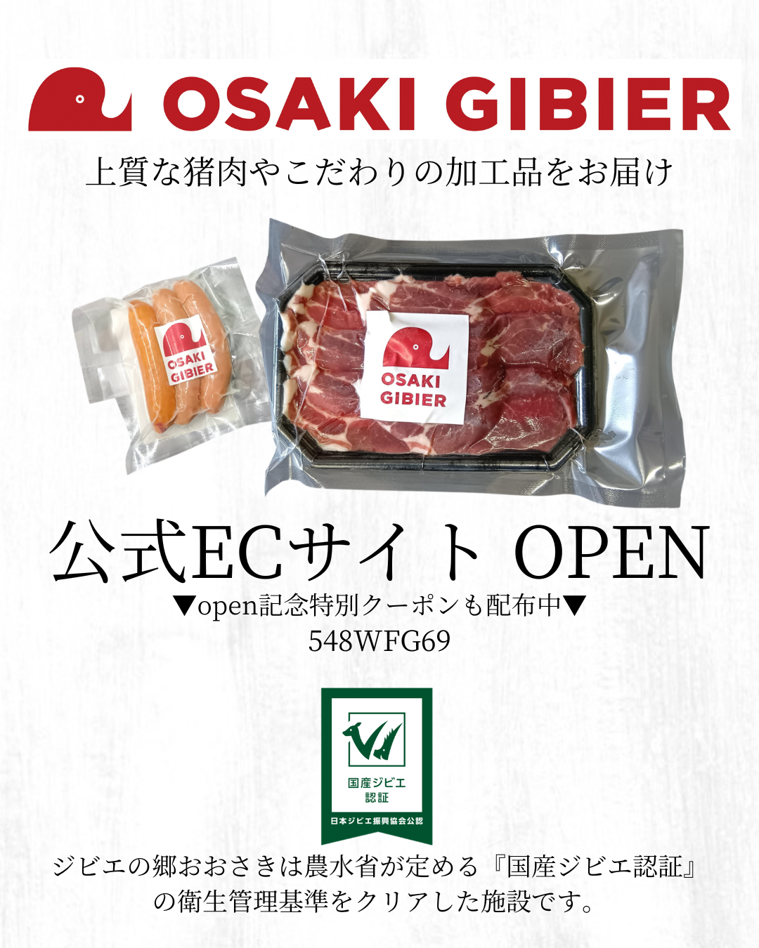 このたび、「ジビエの郷おおさき」公式オンラインショップを開設いたしました。