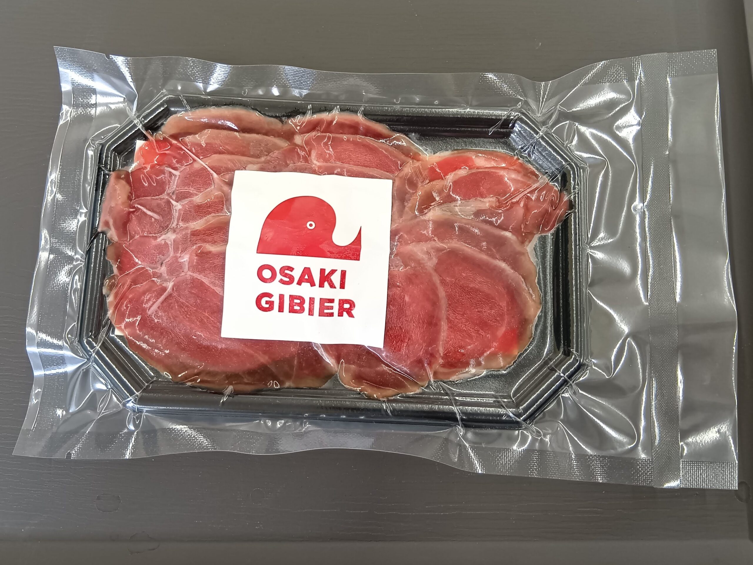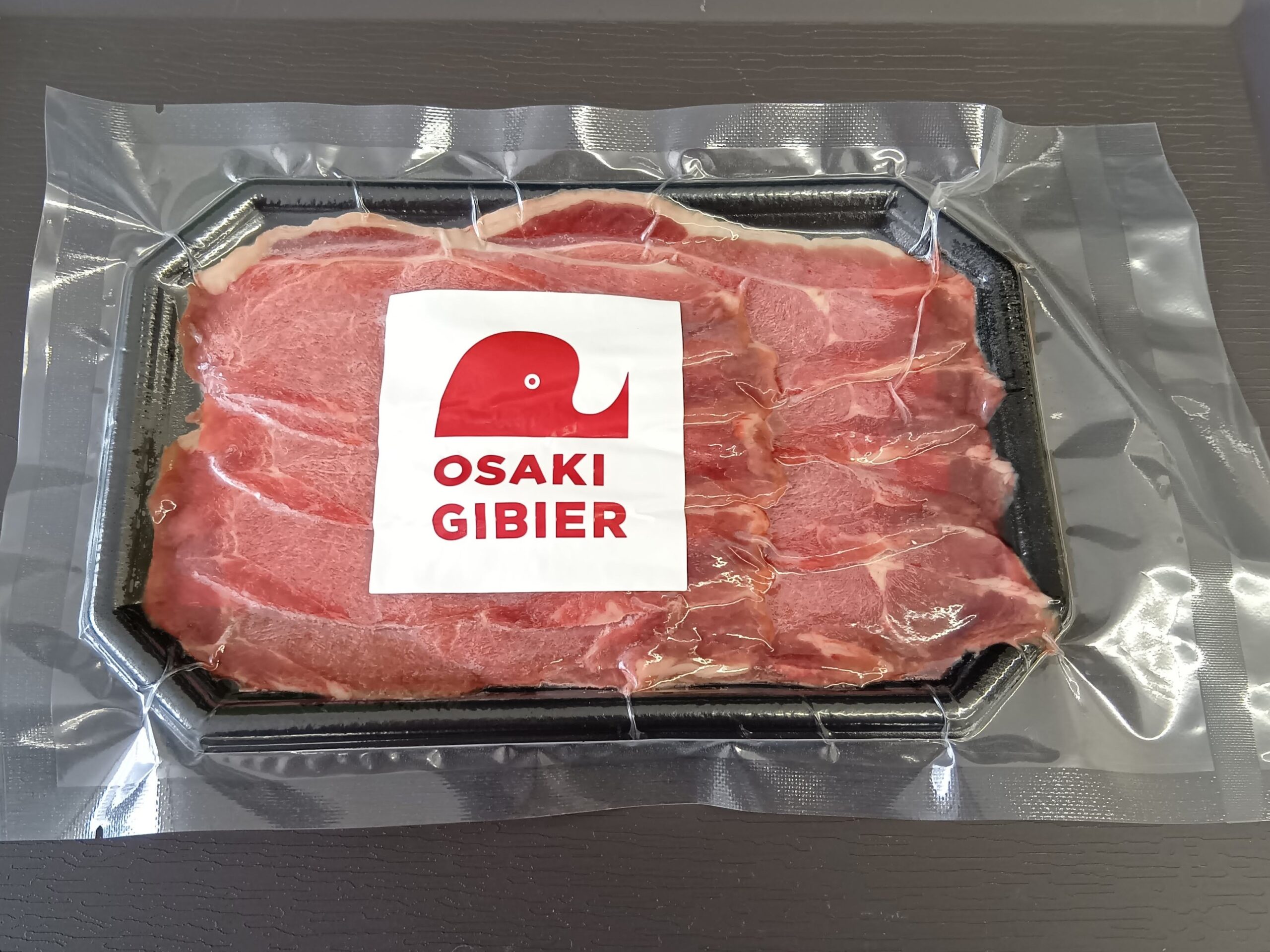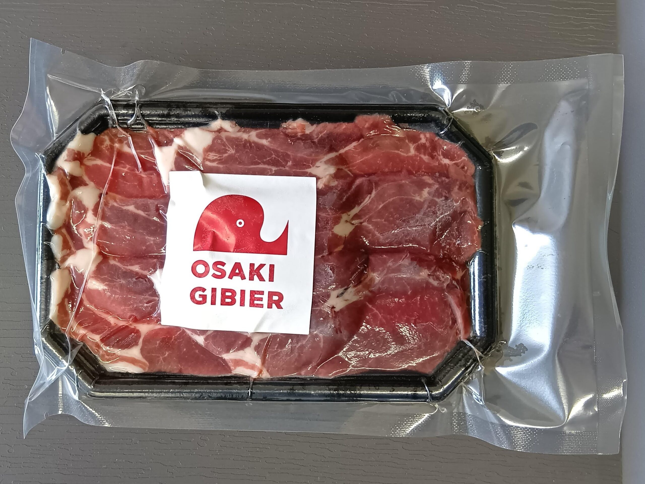 赤身の多いイノシシ肉を1mm厚の切落しパックにしました。